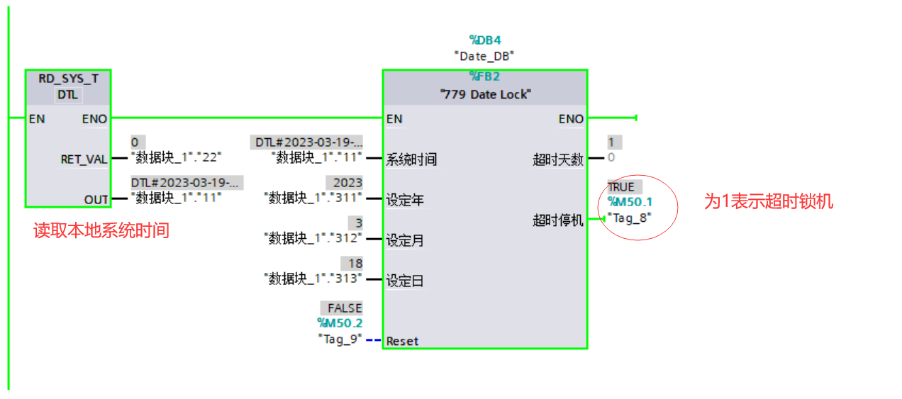 但是這中間發現梯形圖中有些指令沒那么方便,而且S7-1200的系統時間又是DTL數據類型,但是我們實際要用的其實只要“年,月,日”這幾個參數就可以了。