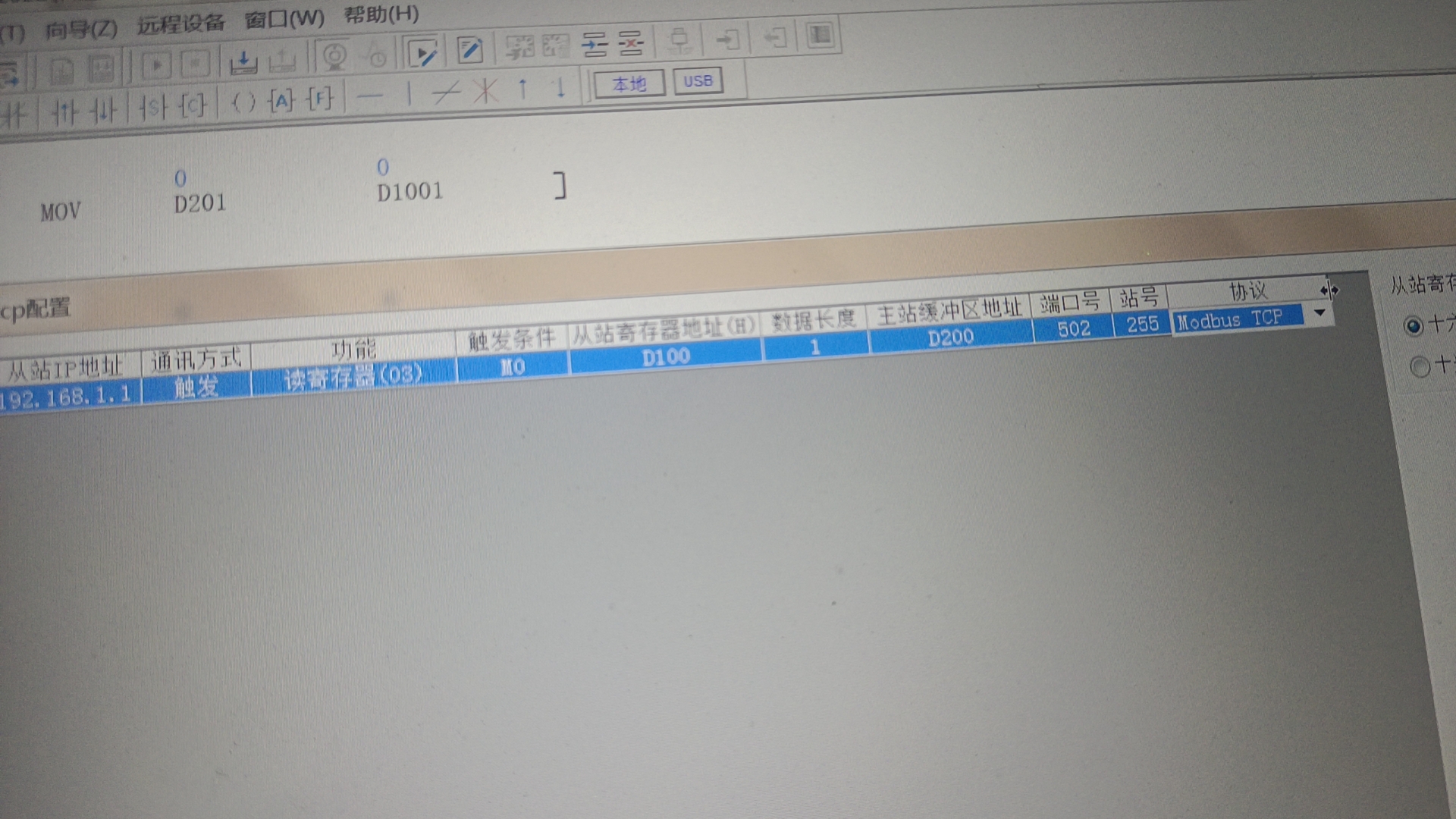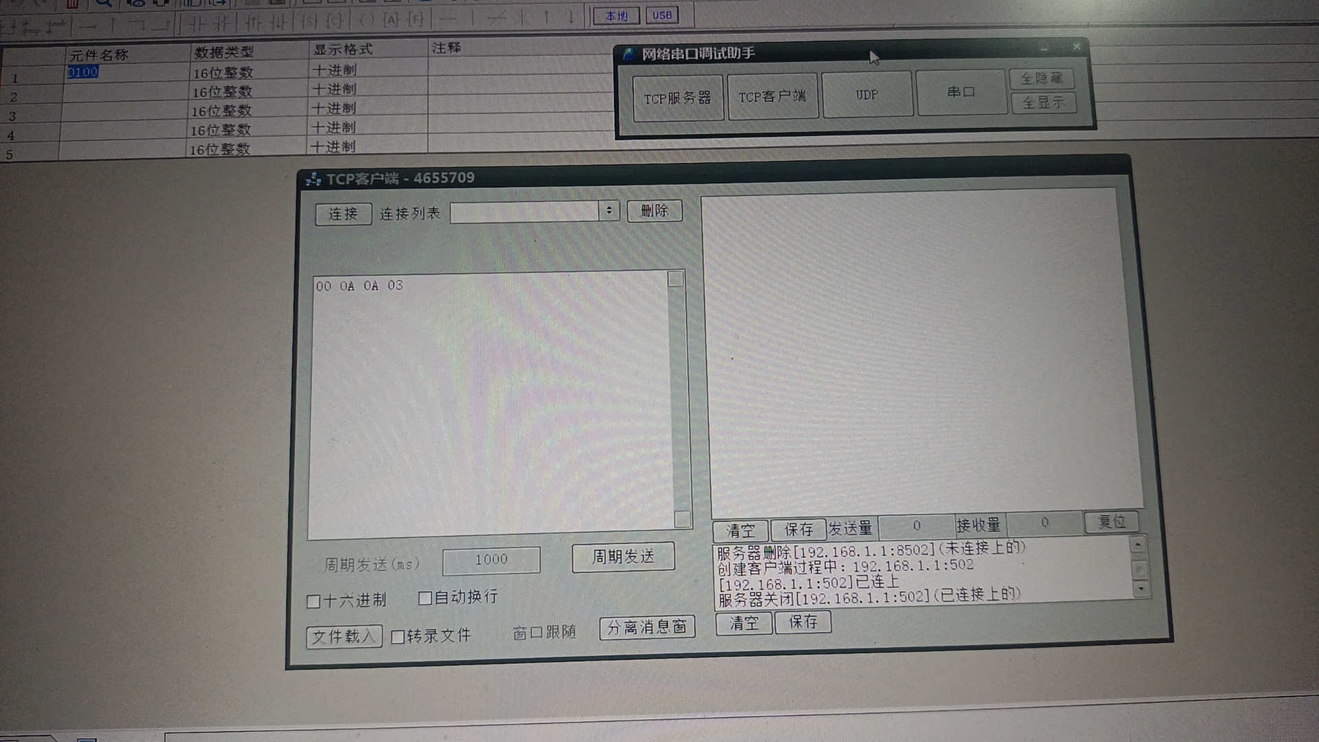 PLC側不用做設置,PLC做從站,PC做主站,端口號選擇502,再發送modbus TCP指令
