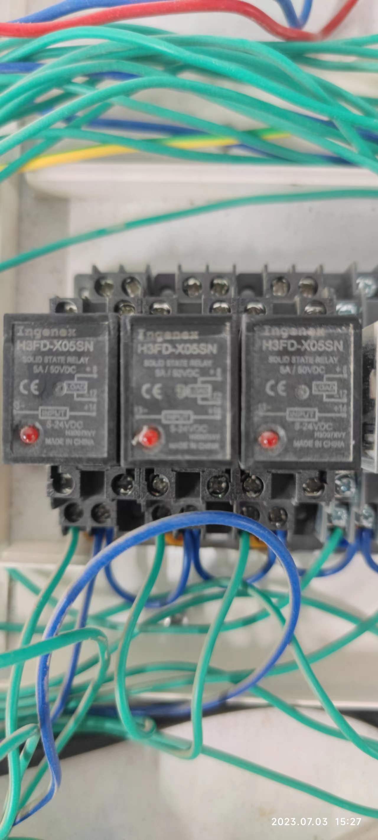 1、流程描述:傳送帶側面裝有感應器,感應到蝦來伺服電機快速啟動控制刀軸下降切割蝦(伺服軸頭裝有凸輪(偏心輪),轉角度控制切割深淺)。蝦是按如下分類分批次放料的(如:此批次放尾不切、頭和中間都切的一批,送料時,規定蝦尾朝前、蝦頭朝后,一只一只蝦的放料,2只蝦之間間隔時間大約400ms-500ms),切完一只復位最高位(原點)等待切下一只蝦。可根據蝦的長短大小控制切割時間和深淺。