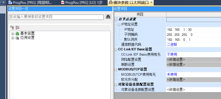 除了IP地址,兩臺FX5U都是默認的網絡配置