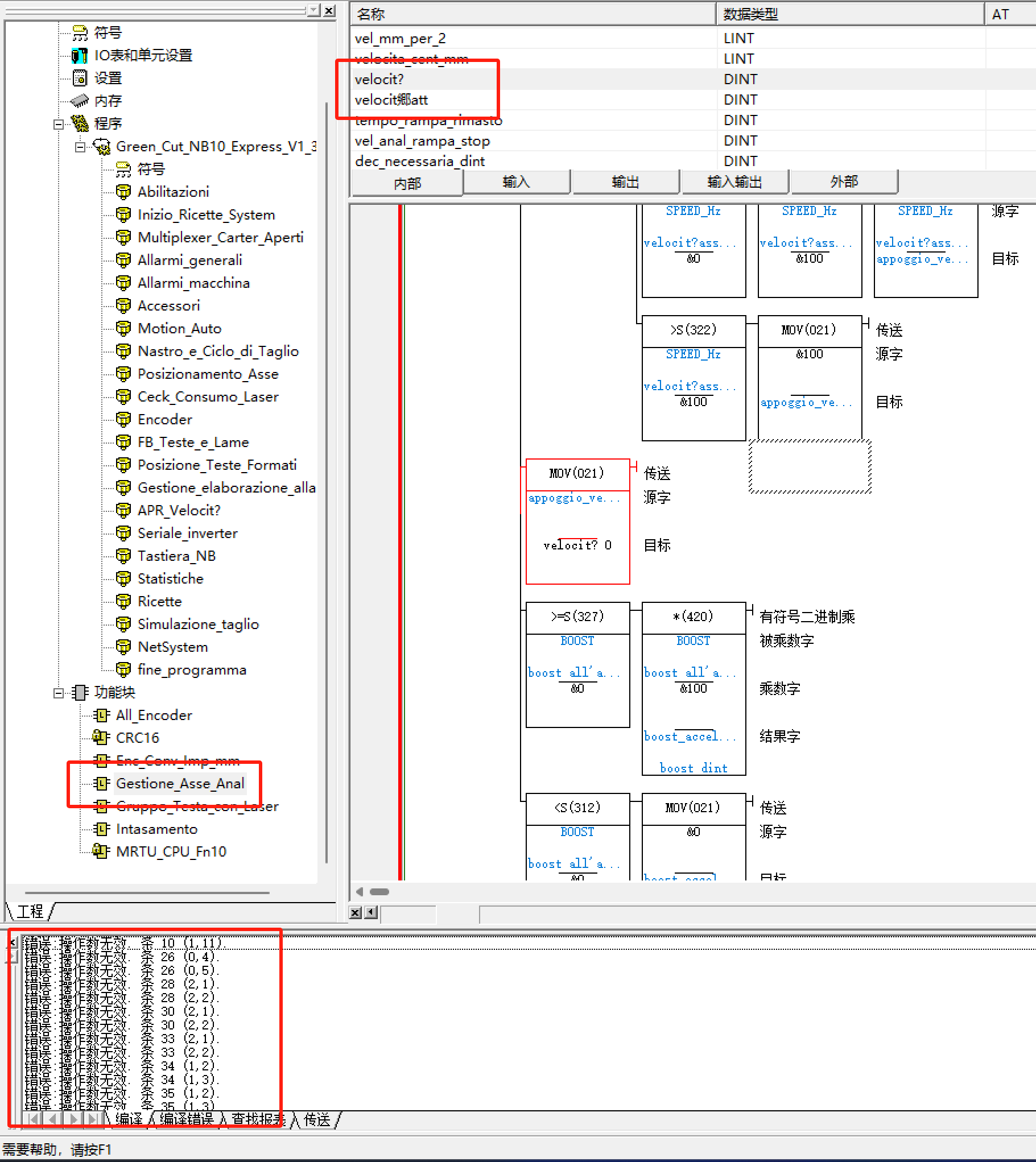 剛剛看了一下,要編譯PLC程序才有錯誤,這個這是編譯了程序,功能塊沒有編譯到,現在是有個功能塊有問題。