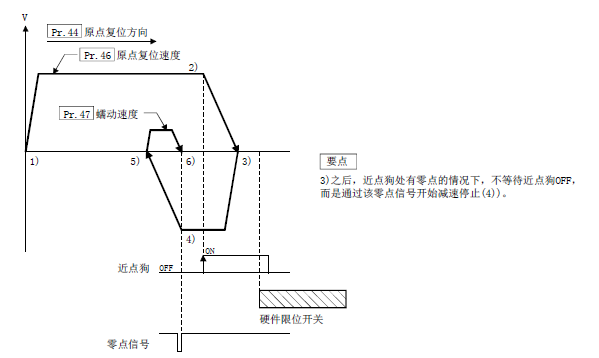 2、在原點上,正方向用爬行速度回,直到原點感應滅