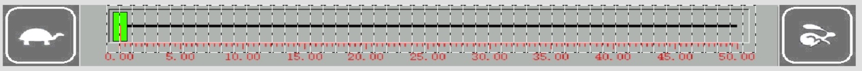 萬般無奈下,只能在刻度顯示上做手腳,無法滑動調整,那就把刻度條分成51塊,在刻度條上X方向多重復制51個間隔為0的功能為“寫入數據”的“字開關”,