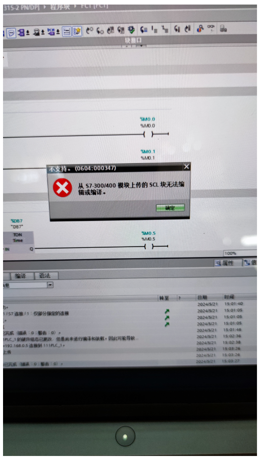 現場有一個300的2PN DP的PLC用STEP7上傳程序提示之前是用博圖下載的,遂用博圖15上傳,一點上傳博圖就閃退,沒辦法又換V16,作為新站把硬件軟件全部上傳上來了,但是有幾個塊有禁止符號,點擊顯示300上傳SCL無法編輯及編譯,把其他正常的塊打開但是在線監控圖標是灰色的,各位大俠誰遇到過這種情況?