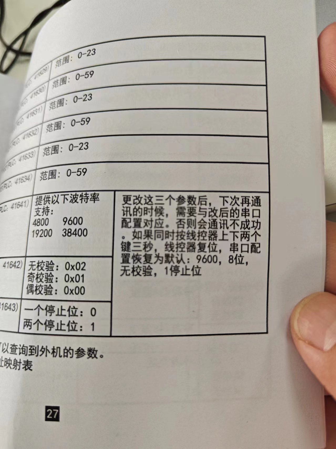 端口是對的,接線應該也沒錯。參數是按照說明書上重置設備后的默認參數設置的。