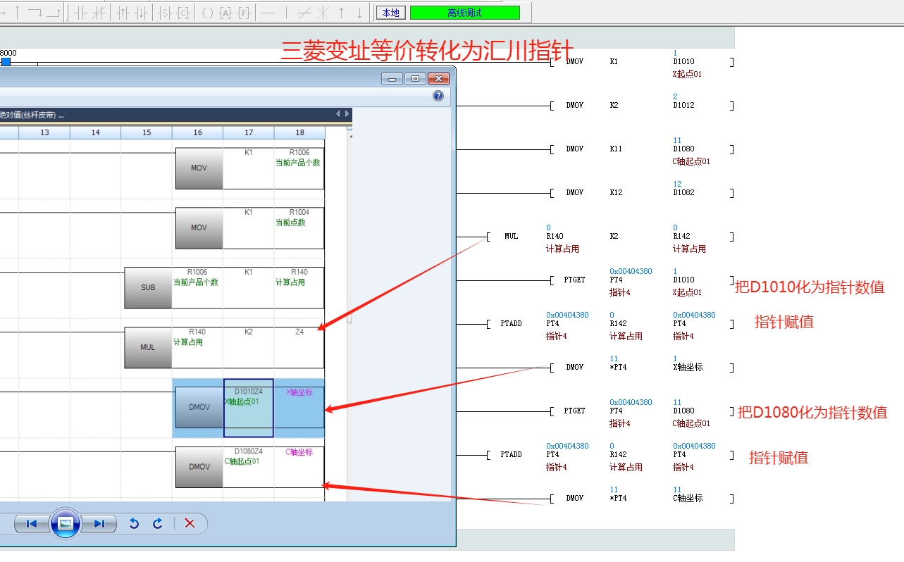 引用樓主夢雨天涯于2024-08-30 12:33發表的 三菱變址等價轉化為匯川指針 :