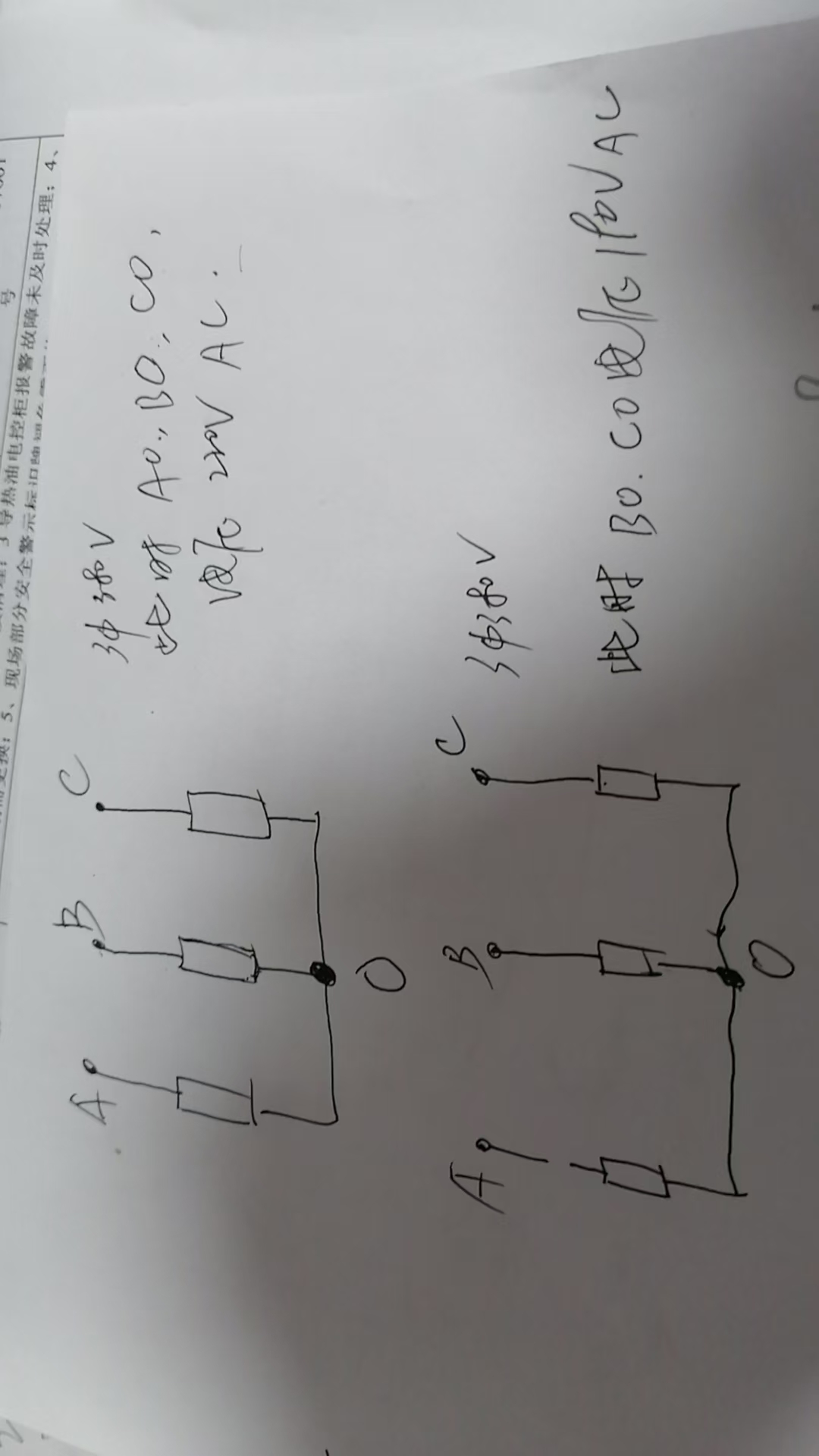 引用引用第17樓sanlihu于2024-12-23 09:32發表的 :sky6595418三相正弦交流電,AB,BC.CA相的電壓都是線電壓,約380伏,A對中性點的電壓是相電壓,(AO,BO,CO)都是220伏,你說為什么不是380/2=190,也有一種情況是190伏,那就是中性點無引出線,并。且有一相電斷電。