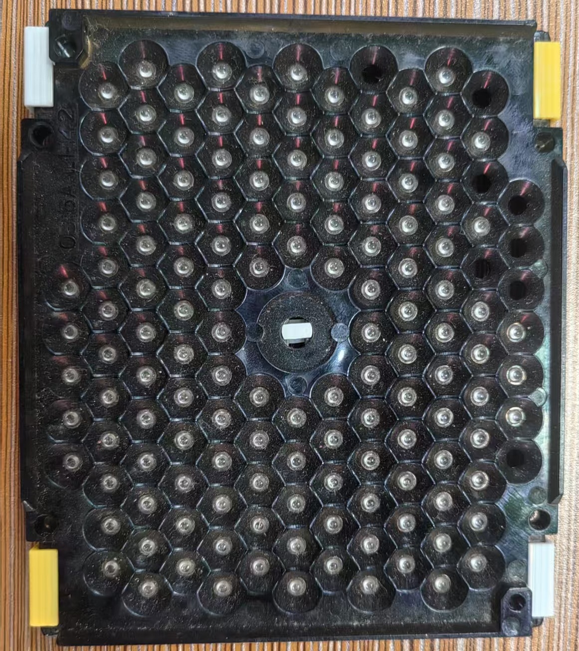 有很多同學不知道蜂巢盤的狀態,我這剛好有個AOI檢測的料盤,蜂巢都會不規則,凸起與凹進就是圖片里這種盤,甚至沿行/沿列都會不同,還有無效點。 相比這種,矩陣盤不要太良心。