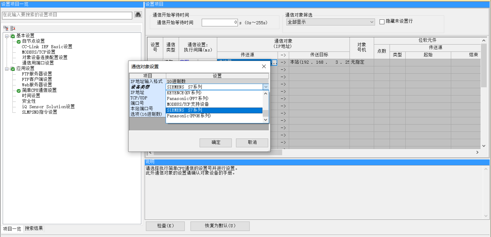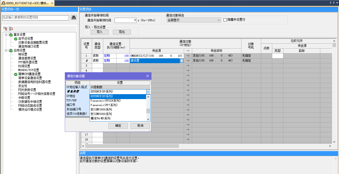然后上圖是R系列的簡單cpu通信設置,只能選擇三菱的plc進行通信。。。