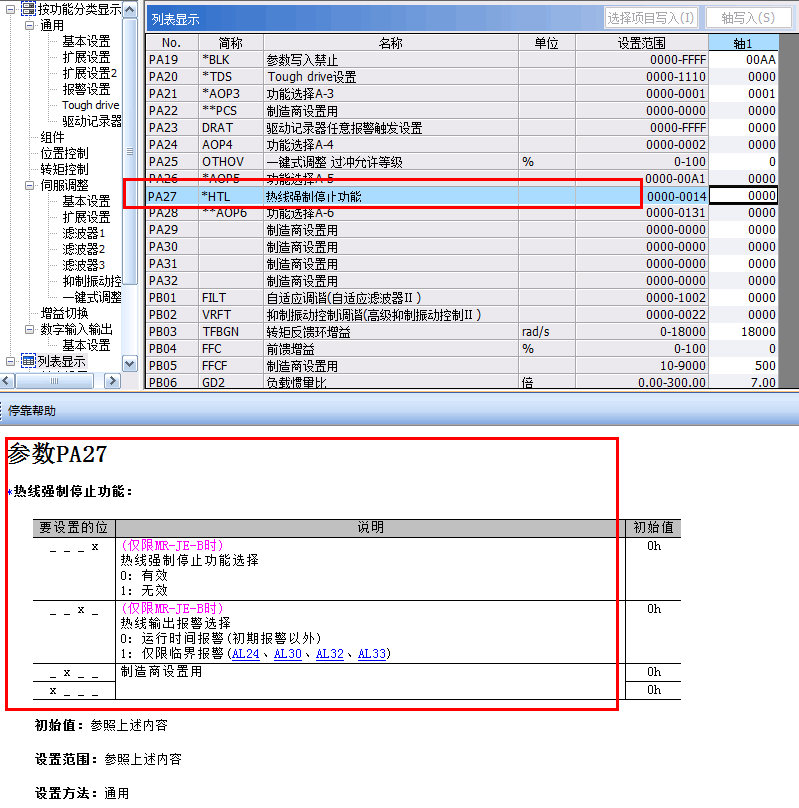 可以通過伺服參數(PA27)將熱線強制停止功能設為無效