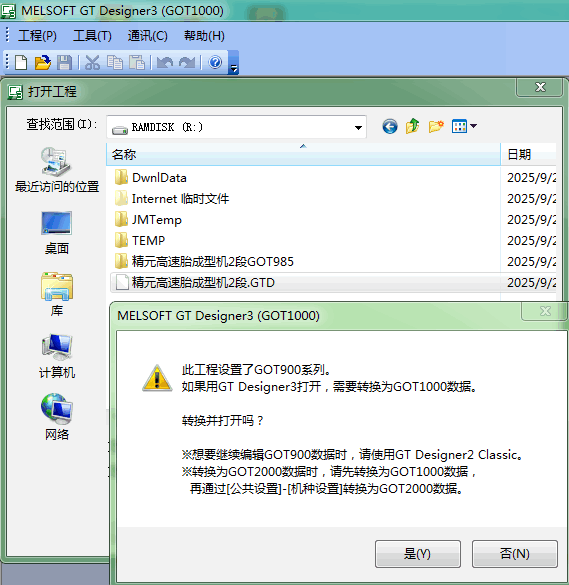 論壇右上角  工控下載區 里面有舊版本的GTD2軟件,可以直接打開轉換A985GOT的工程文件,