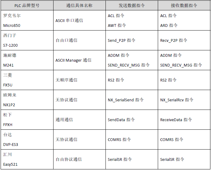 主流PLC串口自由協(xié)議通信標準化 一、PLC串口自由協(xié)議通信概述: 串口自由協(xié)議通信是一種靈活的串行通信方式。在該模式下,開發(fā)者無需遵循特定標準協(xié)議,可根據(jù)實際需求自由定義數(shù)據(jù)格式與交互規(guī)則。通常需明確數(shù)據(jù)幀結(jié)構(gòu),例如設(shè)置起始字節(jié)、數(shù)據(jù)長度、校驗位等字段,通過自定義包頭、包尾標識數(shù)據(jù)幀邊界,利用校驗算法確保數(shù)據(jù)傳輸準確性。通信時,發(fā)送端按自定義協(xié)議打包數(shù)據(jù)并發(fā)送,接收端解析數(shù)據(jù)幀,判斷校驗是否正確后處理有效數(shù)據(jù)。這種模式靈活性強,適用于嵌入式設(shè)備調(diào)試、傳感器數(shù)據(jù)采集等場景,可根據(jù)技術(shù)需求靈活調(diào)整協(xié)議細節(jié),但需開發(fā)者自行處理數(shù)據(jù)解析與錯誤處理邏輯。 二、PLC實現(xiàn)串口自由協(xié)議通信: 不同品牌PLC實現(xiàn)串口自由協(xié)議通信的名稱、發(fā)送數(shù)據(jù)使用指令和接收數(shù)據(jù)使用指令均有所不同,詳情如下表所示。 ![]() 由此可見,不同品牌PLC實現(xiàn)串口自由協(xié)議通信,使用指令不同,編程不同。為此有必要進行PLC串口自由協(xié)議通信標準化編程,將不同品牌PLC的串口自由協(xié)議通信封裝成具有相同輸入?yún)?shù)和輸出參數(shù)的功能塊、指令庫或用戶庫,以便大家方便、快捷、迅速的使用PLC串口自由協(xié)議通信。 三、PLC串口自由協(xié)議通信標準化: 根據(jù)串口自由協(xié)議通信發(fā)送和接收數(shù)據(jù)實際情況,我們這里約定封裝完成的各品牌PLC串口自由協(xié)議通信功能塊、指令庫或用戶庫如下圖所示。 功能塊、指令庫或用戶庫參數(shù)含義如下表所示。 ![]() 四、主流PLC串口自由協(xié)議通信功能塊視頻教程: PLC通信標準化:羅克韋爾Micro850串口自由協(xié)議通信 https://www.bilibili.com/video/BV1qhg6zSEPf/ PLC通信標準化:西門子S7-1200串口自由協(xié)議通信 https://www.bilibili.com/video/BV1Na33znExt/ PLC通信標準化:施耐德M241串口自由協(xié)議通信 https://www.bilibili.com/video/BV1HU3BzWEPH/ PLC通信標準化:三菱FX5U串口自由協(xié)議通信 https://www.bilibili.com/video/BV1gQGwzzEQx/ PLC通信標準化:歐姆龍NX1P2串口自由協(xié)議通信 https://www.bilibili.com/video/BV1PwMQzpEJG/ PLC通信標準化:松下FPXH串口自由協(xié)議通信 https://www.bilibili.com/video/BV1q5MQzVEqz/ PLC通信標準化:臺達DVP-ES3串口自由協(xié)議通信 https://www.bilibili.com/video/BV1b9uPzNEik/ PLC通信標準化:匯川Easy521串口自由協(xié)議通信 https://www.bilibili.com/video/BV1gLgAzKEd6/ PLC通信標準化:三菱FX3U串口自由協(xié)議通信 https://www.bilibili.com/video/BV18VgHzJEKE/ |