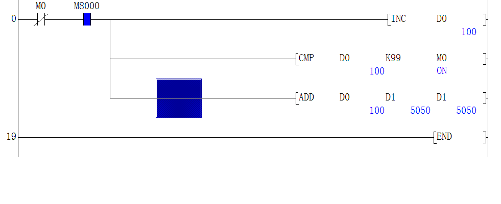 請各位高手指教用PLC的循環指令怎樣實現1到100的循環相加