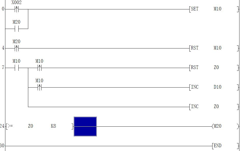 作如下改動后,D10 就自動加1,Z0在0-8之間反復(fù)循環(huán)