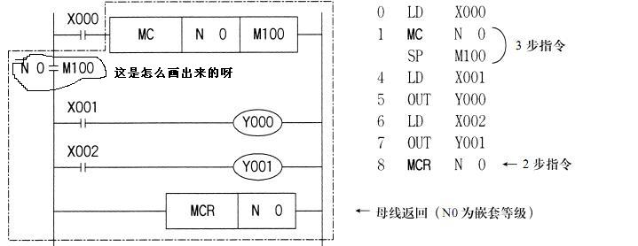 請朋友們幫忙解釋一下。MC MCR指令在梯形圖上應(yīng)該怎么畫   請舉例說明  謝謝了