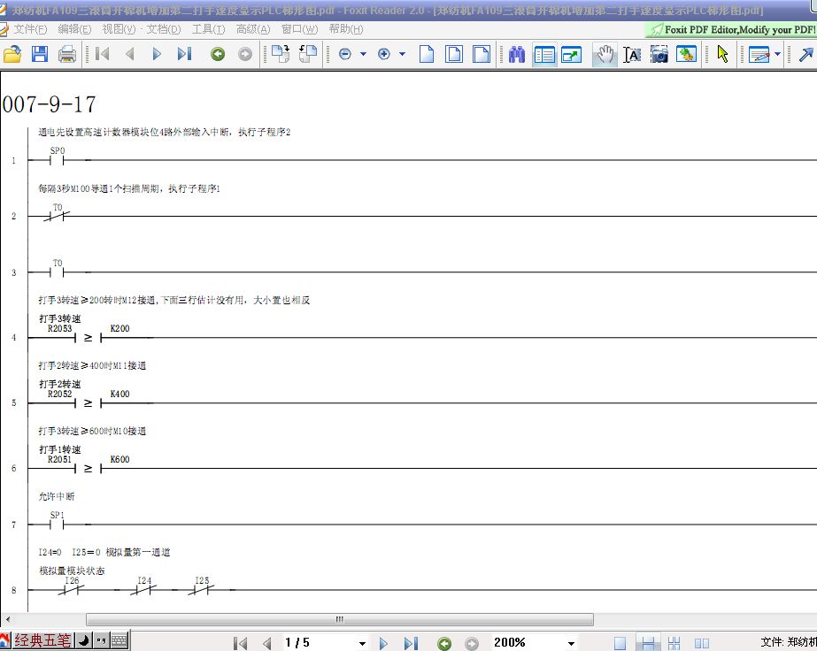 鄭紡機FA109三滾筒開棉機原版PLC梯形圖