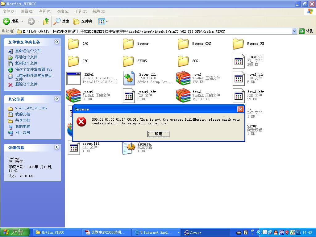 少寫下東西了:安裝WINCC 6.2SP3時提示的錯誤問題