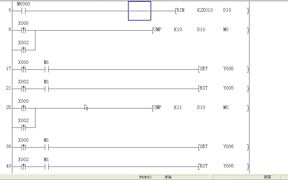 若SET Y5一行的M1接通,則(D10)=K10;那么此時,比較值為11的一行比較指令,此時是M0接通、M1斷開,所以Y6不能接通。
