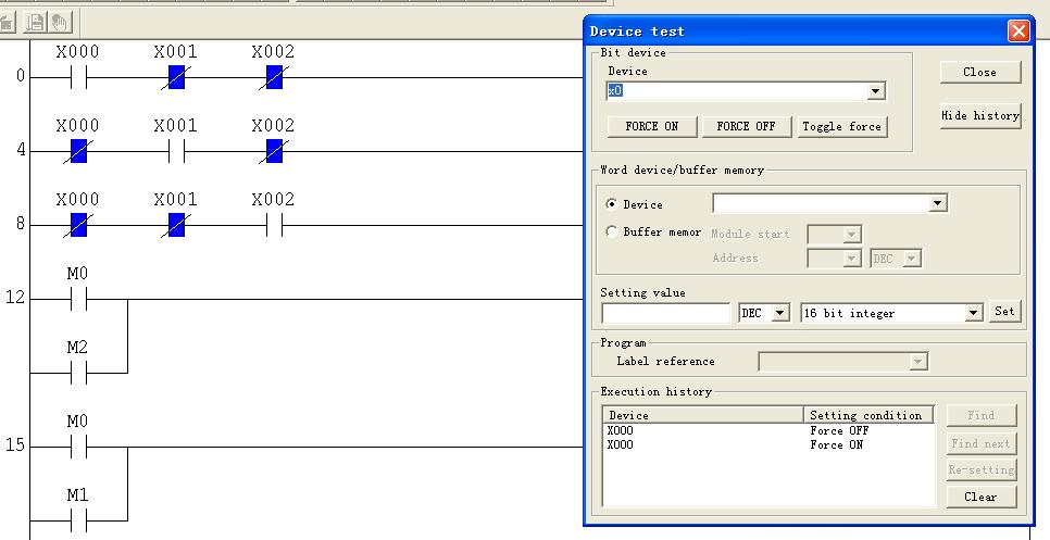 三菱的PLC在GX中不能強制X的,可以用短線直連COM端和需要檢測的輸入點,看有沒信號來判斷輸入點有沒問題,沒問題那就是現場接線問題.