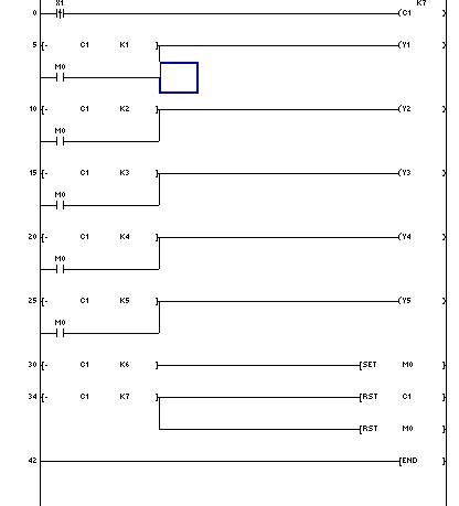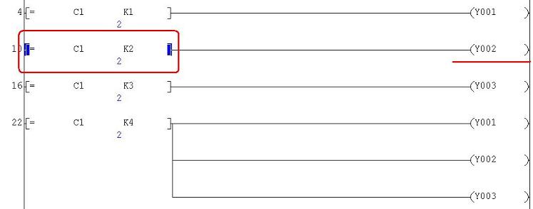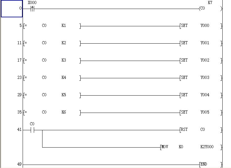 雙線圈錯誤啊,這樣的結果只會在第六次全亮,第七次全滅才會有效。使用雙線圈就說明你還沒懂得編程的思路。輸出只出現一起,關鍵是寫好輸出的條件。不過呢有時候巧妙地利用雙線圈可以簡化程序