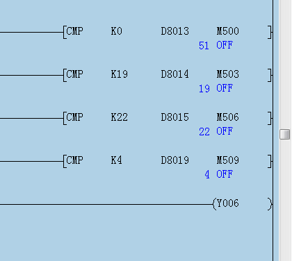 問一個很笨的問題,FX的PLC要求每個星期一5時Y6有輸出.這個程序是怎么寫啊?
