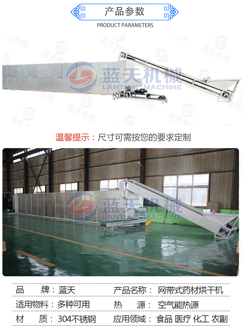 河南藍天機械制造有限公司 > 熱泵帶式烘干機 > 網(wǎng)帶式藥材烘干機
