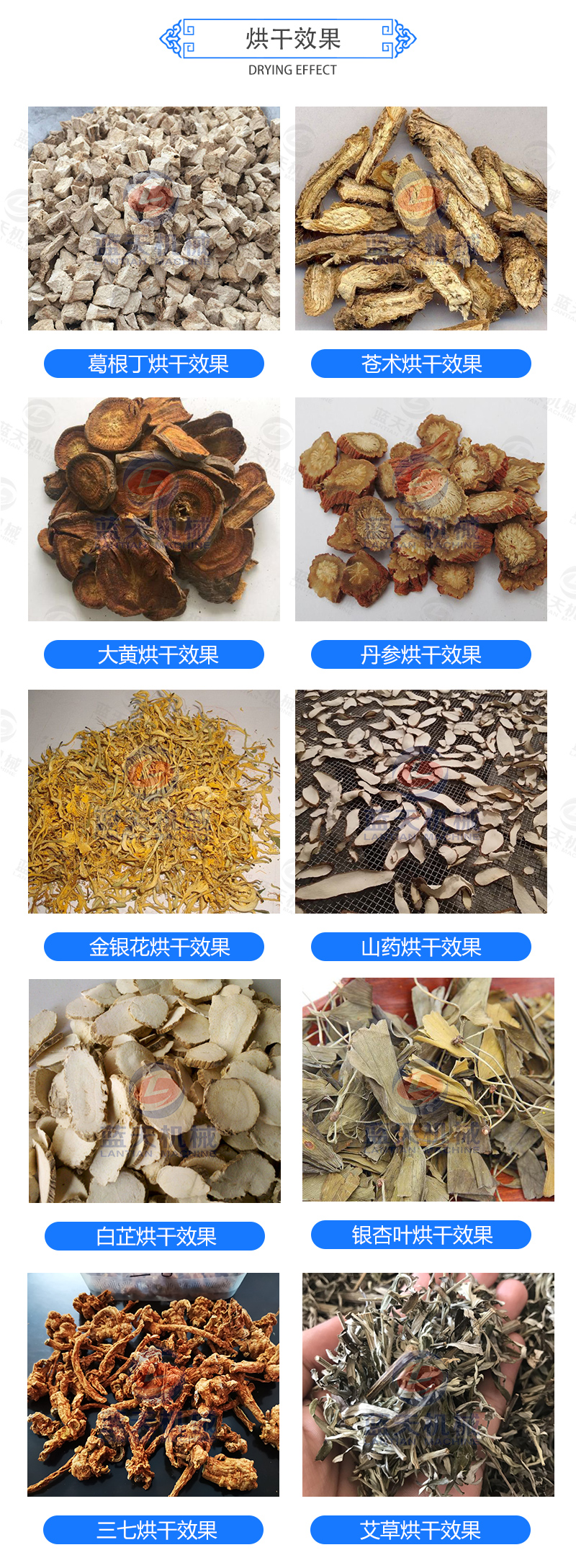 1.網(wǎng)帶式藥材烘干機內(nèi)藥材經(jīng)逐層循環(huán)脫水烘干,烘干過程中產(chǎn)生的濕風(fēng)由大型藥材烘干設(shè)備的頂層直接排空,濕風(fēng)與藥材接觸時間短,同時將網(wǎng)帶式藥材烘干機的每層觀察孔打開一點,隨時逐層排潮,這樣就不會:濕風(fēng)與物品接觸時間較長而出現(xiàn)的“漚”變現(xiàn)象,保證了烘干后藥材的顏色。