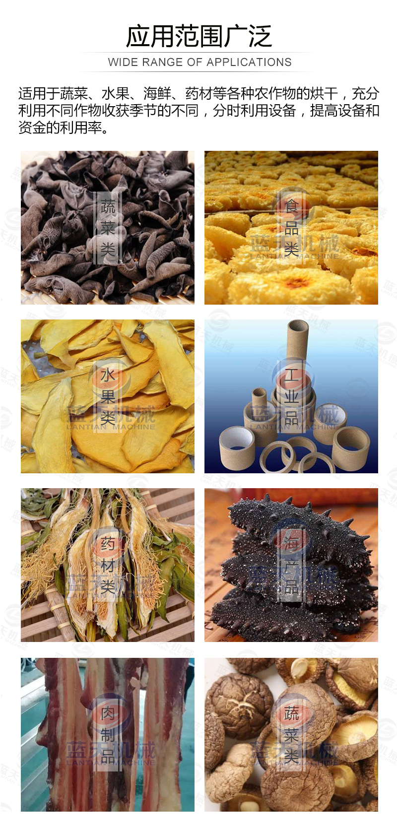 三:設(shè)定木耳烘干機(jī)的運(yùn)行參數(shù),要注意在整個(gè)木耳烘干過(guò)程中前段用35-45度低溫主要進(jìn)行除去濕度,因?yàn)轷r木耳的含水率很大,到中段時(shí)可以適當(dāng)升溫到50度,進(jìn)行升溫排濕,后一階段觀察木耳含稅率下降情況,可適當(dāng)升溫到55度,在經(jīng)過(guò)十多個(gè)小時(shí)的連續(xù)烘干除去濕度后,木耳烘干了。