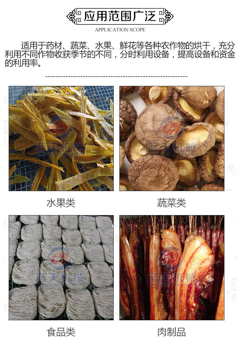 5、小型山藥烘干機空氣循環系統采用風機循環送風方式,風循環均勻效率高。風源由循環送風電機(采用無觸點開關)帶動風輪經由加熱器,而將熱風送出,再經由風道到山藥烘干機內,再將使用后的空氣吸入風道成為風源再度循環,加熱使用。確保室內溫度均勻性。