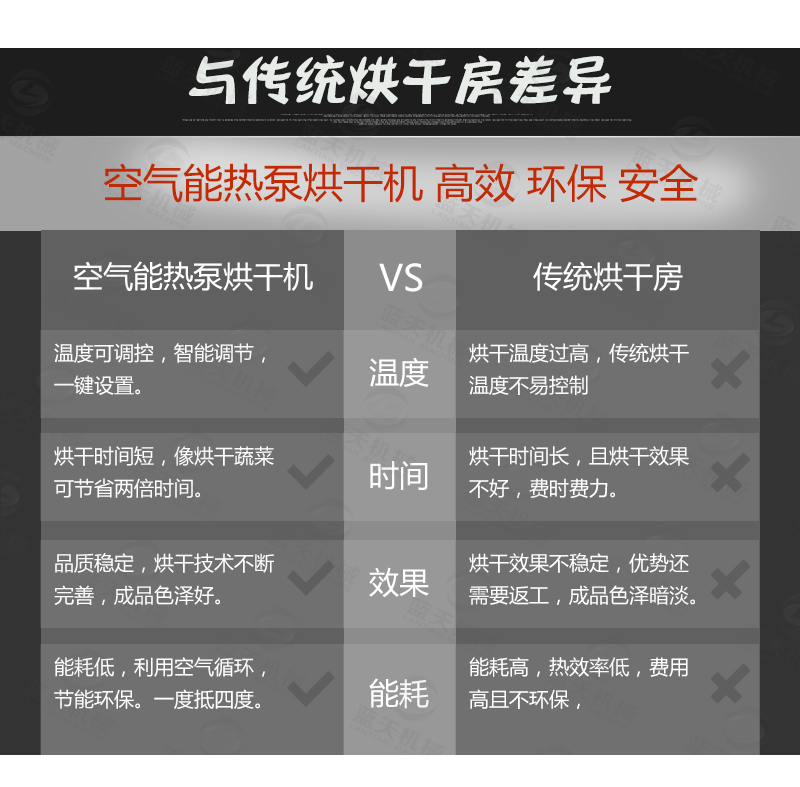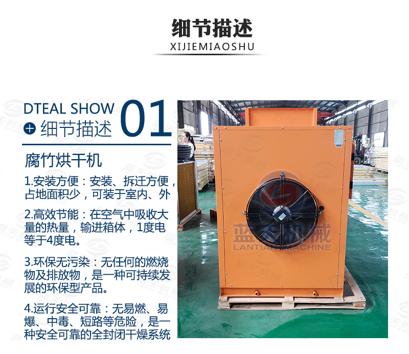 在很多地區,腐竹烘干的市場也很大,近年來,隨著腐竹生產技術和烘干技術的提高,使用熱泵腐竹烘干機,不用燒煤、燒柴、不用鍋爐、蒸氣,只需少量的電能來驅動壓縮機就可以獲得所需要的高溫熱量,并且安全衛生、環保沒有污染、無廢氣排放、運行電費超低。