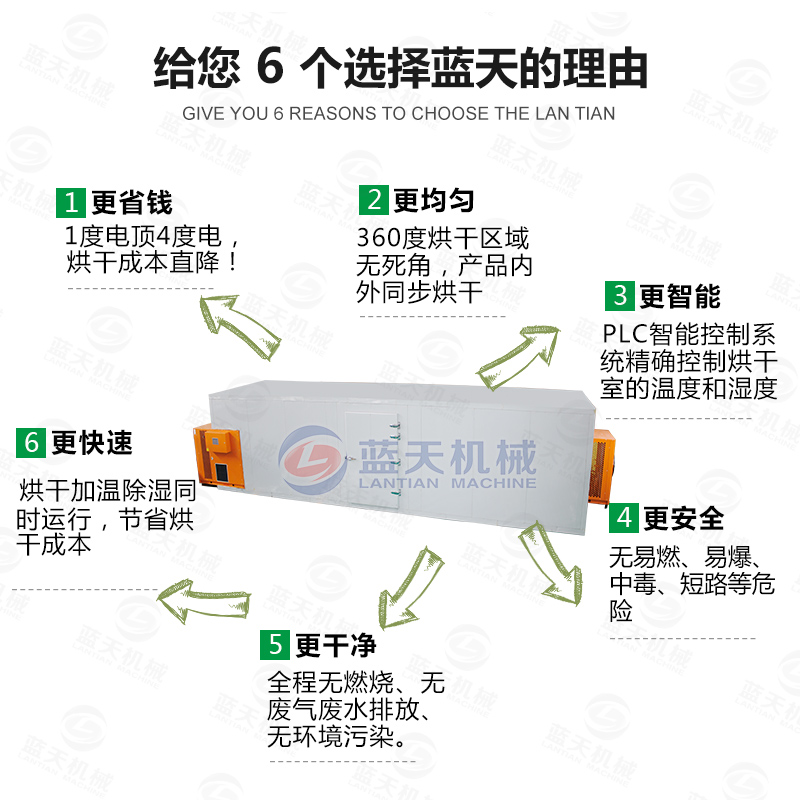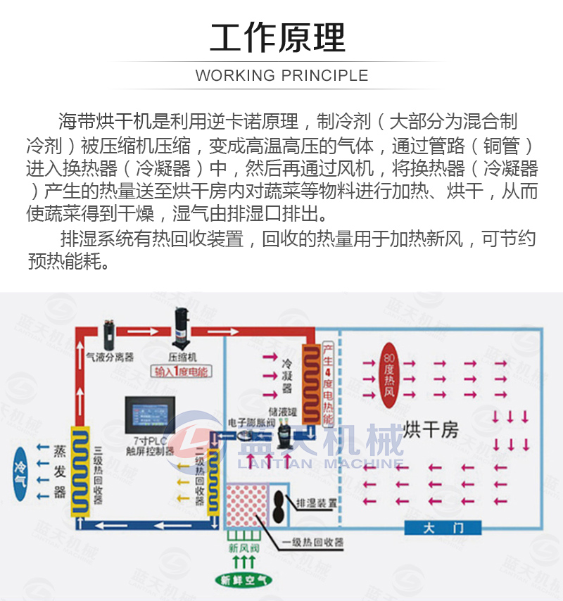 要達到以上的要求,那么烘干設備是很嚴格的。傳統的太陽晾曬等方法都是不合格的,海帶烘干機需要消耗少量的電就能從空氣能吸取大量的熱能使烘干房迅速升溫,同比傳統的烘干設備節能百分之六十以上。海帶烘干設備在常壓常溫下運行,烘干過程幾乎沒有污染物排放,不會對產品和環境造成污染。海帶烘干房是真正可靠的新型烘干設備。海帶烘干機烘干成本低,效率也高,提高了商家的利益,我們都知道海帶的價格是很便宜的,所以如果想要從中獲得利益,那么成本不能高,成本一高,也就掙不到什么。所以海帶烘干機是適合用來烘干海帶的。