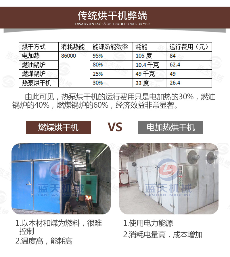 結合以上問題,新的八角烘干機出現了,這種設備是通過少許電能驅動壓縮機做功,從而使系統中的冷媒吸熱放熱來實現熱量從高位轉移到低位的新能源設備,是一種氣流干燥設備,節能環保,智能化控制,不再看天氣,不再需要人守著,一鍵啟動,自動烘干,自動停機。