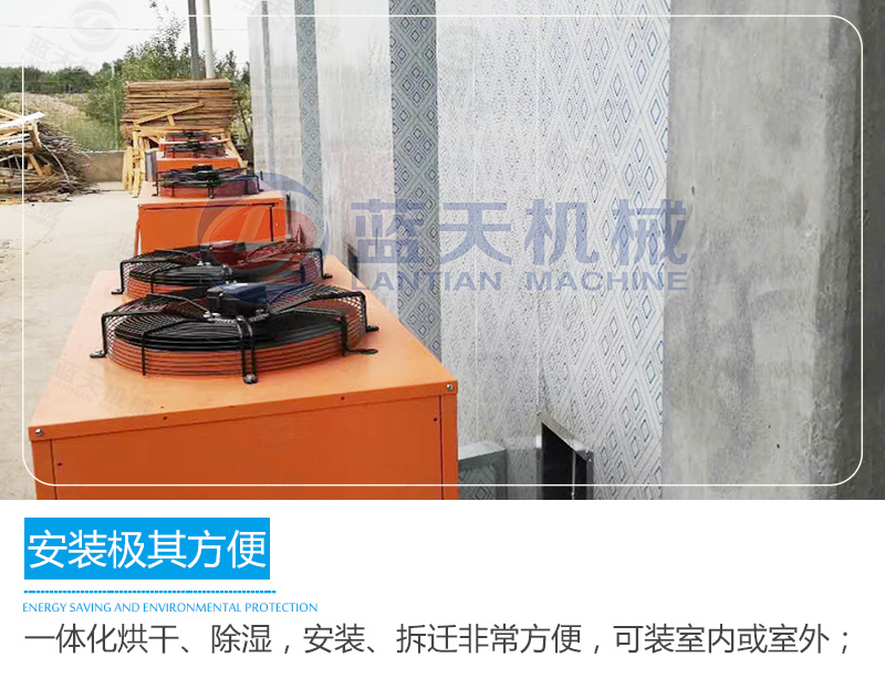 藍天海產品烘干機采用觸摸屏控制系統,可實現多個時段曲線控溫,操作簡單方便。海鮮烘干機吸收空氣的熱量并將其轉移到房內,實現烘干機內的溫度提高,配合相應的除濕裝置實現海產品的烘干干燥。海產品烘干機設備由壓縮機-換熱器(內機)-節流器-吸熱器(外機)-壓縮機等裝置構成一個循環系統(主機+烘干機)。冷媒在壓縮機的作用下在系統內循環流動。它在壓縮機內完成氣態的升壓升溫過程(溫度高達115℃),它進入內機釋放出高溫熱量加熱海產品烘干機內空氣,同時自己被冷卻并轉化為流液態,當它運行到外機后,液態迅速吸熱蒸發再次轉化為氣態,同時溫度下降至零下20℃-30℃,這時吸熱器周邊的空氣就會源源不斷地將熱量傳遞給冷媒。冷媒不斷地循環就實現將空氣中的熱量搬運到海鮮烘干機內加熱機內空氣溫度,從而實現能量的幾倍增長,消耗一度電產生的熱量相當于傳統電熱絲的4倍以上,達到效率高節能的效果。