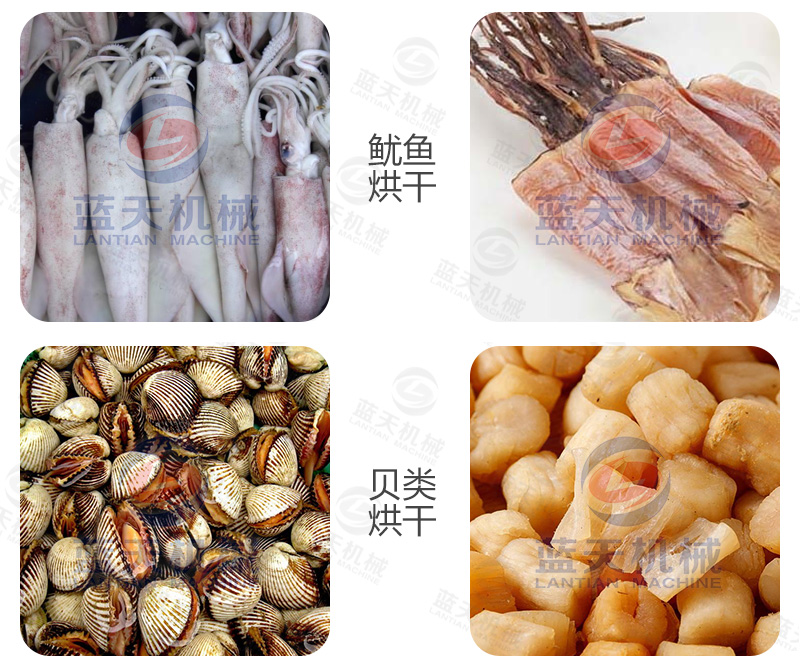 海產品烘干機設備不僅可用于烘干魚、蝦、海帶、殼類等海鮮產品,還廣泛應用于農業、工業、食品、化工等行業,能滿足現有80%以上的原材料的干燥烘干和深加工。
