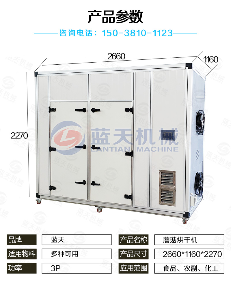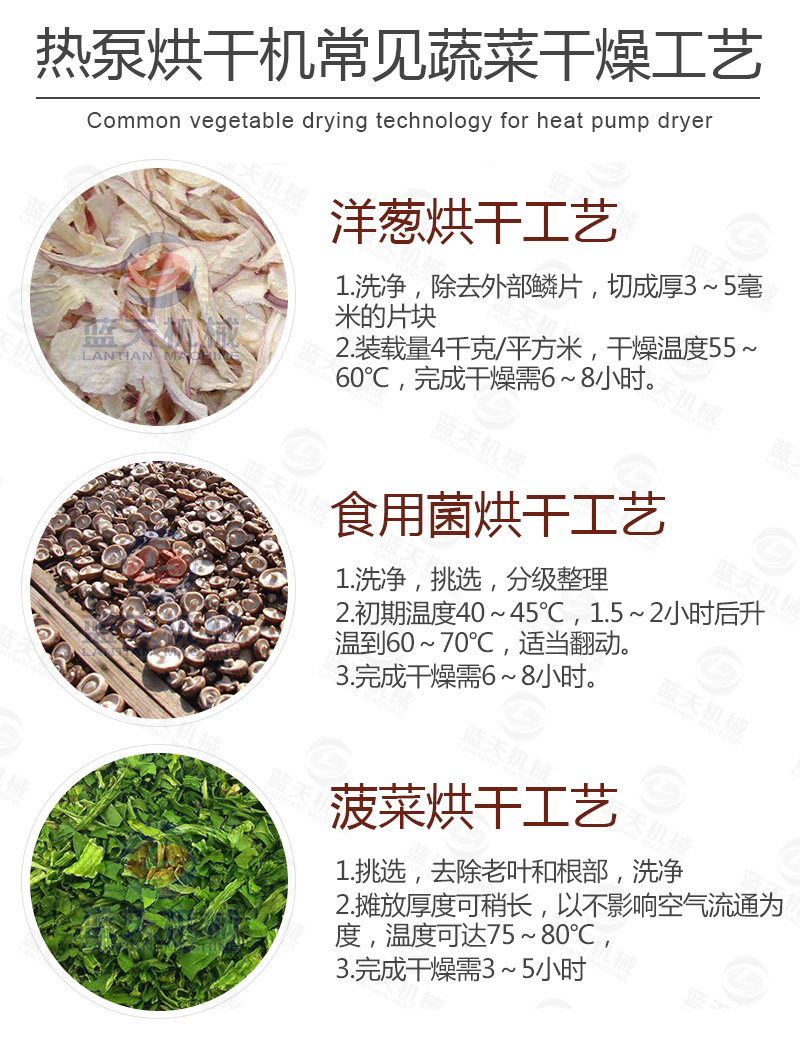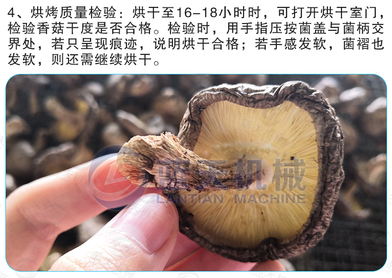 (3)烘干質(zhì)量好——蘑菇烘干機(jī)裝置中的干燥介質(zhì)是在封閉的空間循環(huán);不受外界氣候條件的影響,一年四季在同一條件下運行,所以烘干干燥的質(zhì)量非常良好。
