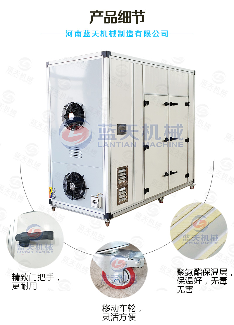 (1)能耗費用低——野生蘑菇烘干機(jī)采用加熱模式是熱泵空氣能,烘干機(jī)在運行中能回收外界環(huán)境中濕熱空氣的顯熱和潛熱,能量得到足夠而合理利用,是一種公認(rèn)的效率高節(jié)能設(shè)備。比傳統(tǒng)的柴油鍋爐干燥房、電熱烘干房,煤鍋爐都節(jié)能。