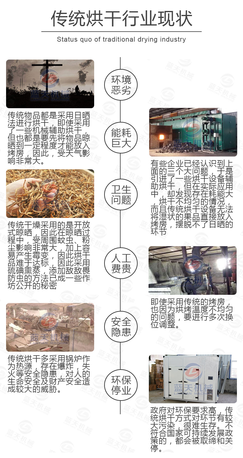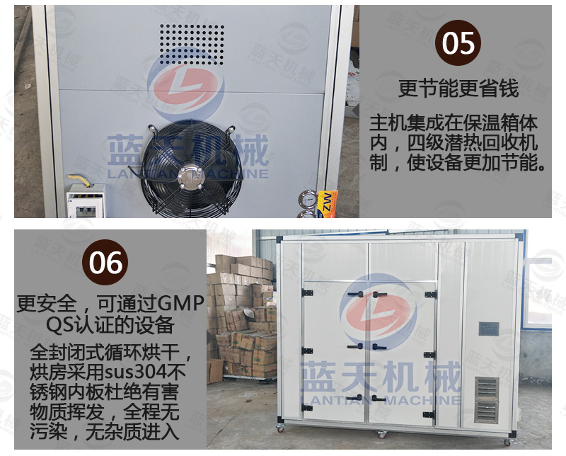 (7)設(shè)備運行沒有三廢的排放,不需要鍋爐或者燒煤燒柴,設(shè)備主要是吸收空氣中熱量對物料進(jìn)行烘干,真正實現(xiàn)節(jié)能生產(chǎn)。