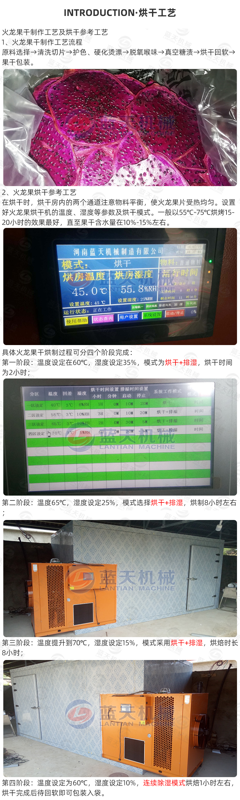 藍天火龍果烘干機制作火龍果片步驟: